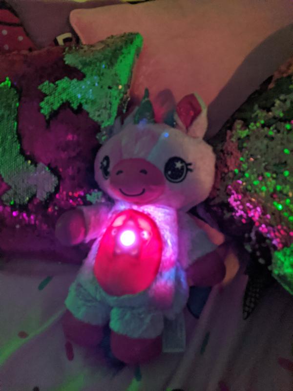 My daughter loves this unicorn. She doesn't go to bed without it. It is very soft and it lights up un 6 different colors. I love that it has it's own timer so it will turn off when she falls asleep. This is a great gift for any little girl.