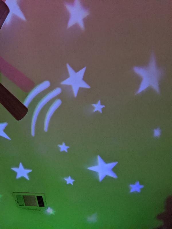 This is such a great product! My child turns it on when she gets in bed and watches her ceiling show until she goes to sleep. It’s very bright when you are in a dark room. I also love that it has a timer so the lights will not stay on all night and run the batteries down. This soft and cuddly unicorn is a hit at my house!