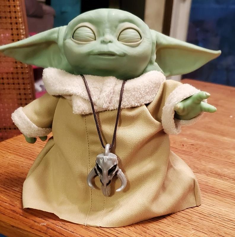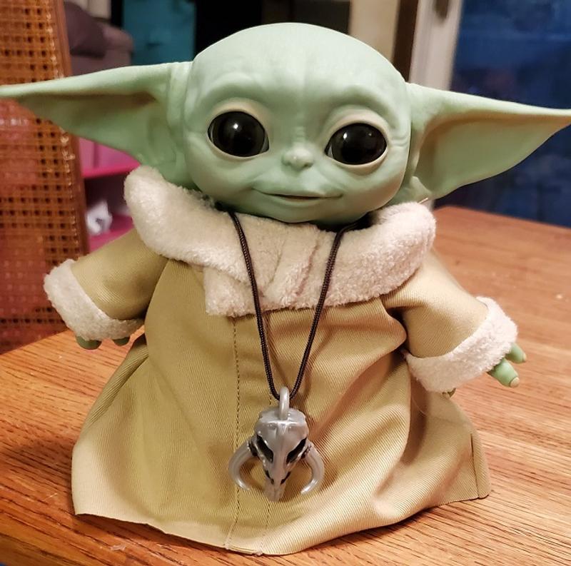 Our 9 yr old is a huge fan of anything Mandalorian - so I got this for his recent birthday. He loved it so much he carries it everywhere. The animatronics are in line with the character from the show. The only downside is the string to the necklace is a bit long - hangs down below the body.