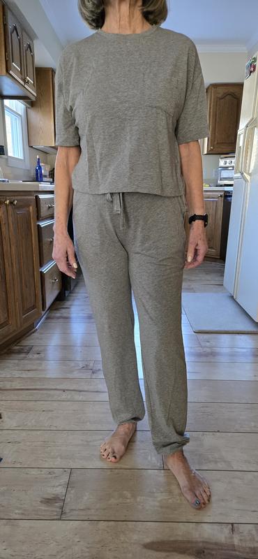 This is a nice lounge/pajama set. It's soft and feels comfortable on. It washed up well. I got the XS petite which fits pretty well, although a little long. No problem since the leg bottoms are elasticized. I'm 5'1", 114 lbs.