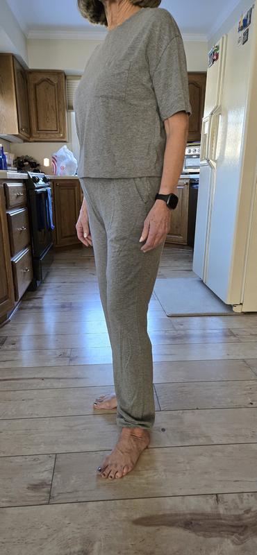 I have several pajamas from this brand and love how soft and stretchy they feel. Plus, they wash and dry very easily with minimal wrinkles. This set is short girl friendly with cuffs at the ankle. The top is far more cropped and boxy than I had anticipated. If you have a long torso and don’t want your abdomen to hang out of your pajamas, this might not be the set for you. I love that it has pockets because I always find myself needing pockets in my pajamas.
