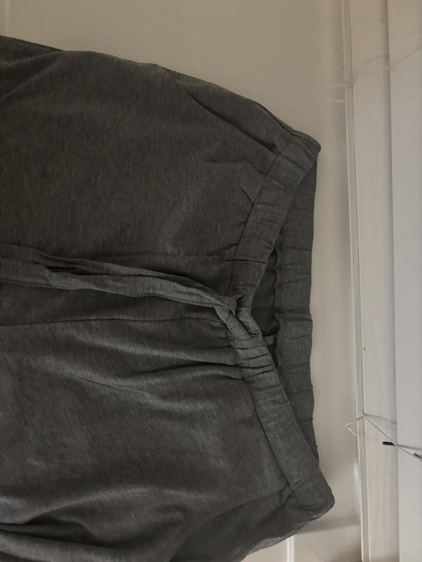 Very lightweight and soft pajamas with a crop top and jogger pants. I didn't realize this was a crop top when I ordered it or else I wouldn't have. Otherwise the pants are on the longer side (I'm 5'5) but very comfortable. These would be perfect for spring or fall with the lightness of the cotton blend fabric. I love the pockets and drawstring waist. The dark blue is also very pretty!