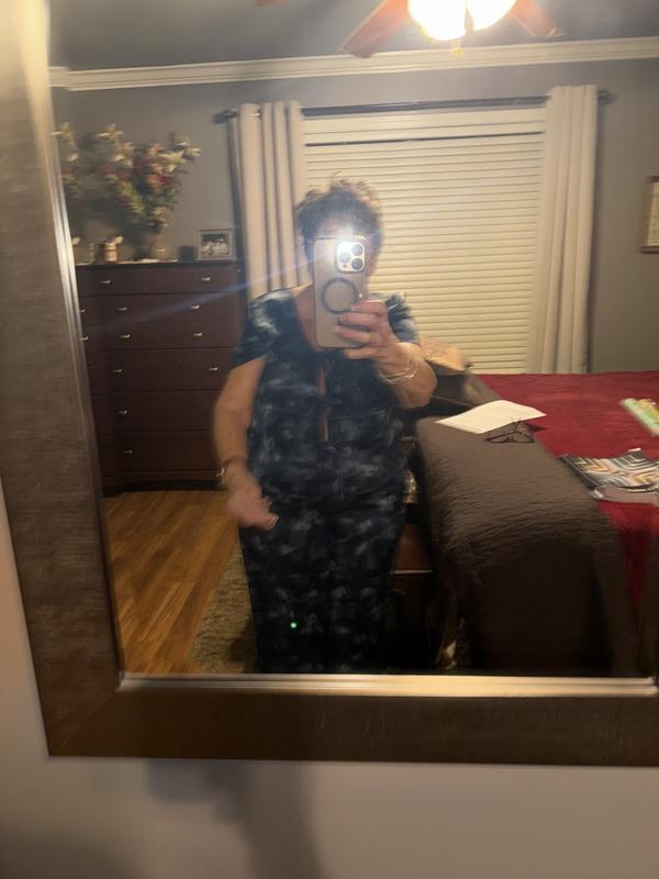 This lepoard print pajama set is so nice. The material is light and soft. I absolutely love the slits on the side of the pants, I wasn't expecting that. The slits add a very feminine touch to the set. I've purchased this brand in the past and the pants have been too long, these are just right. I would say they are true to size.