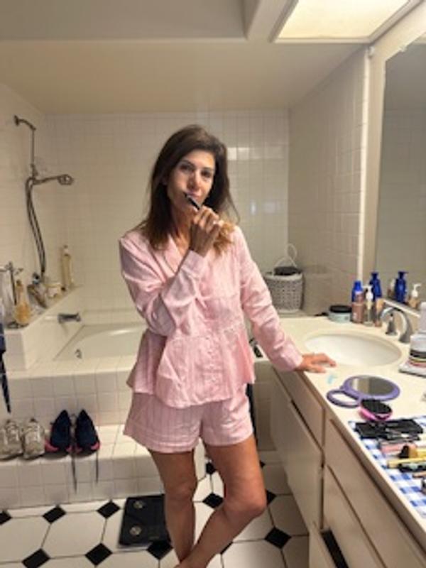 I love the color and the design of the set. The mini flare at the bottom of the top is cute. The only downside to this set is the shorts. Once I washed them, they shriveled up and don't want to have to iron pajamas. Overall, the set is cute. Fabric is soft.