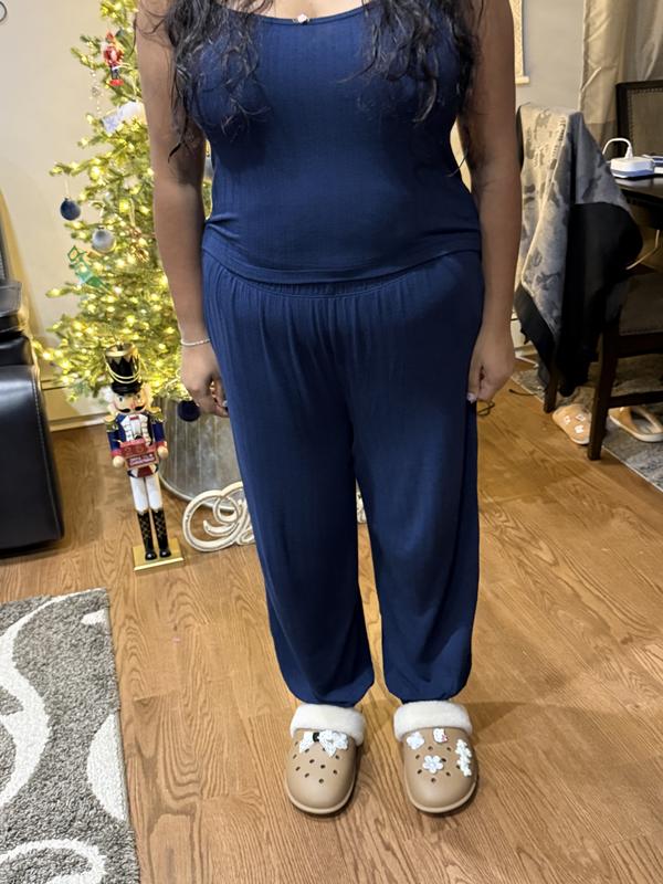 Super soft and comfy!! Love this pajama set, it’s warm but breathable and comfy to sleep in. The flower print is also very pretty and the tank top has a cute flower detail. It also has adjustable straps which is great. The pants have pockets as well which is super convenient. All-around great find!!