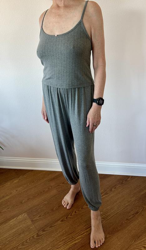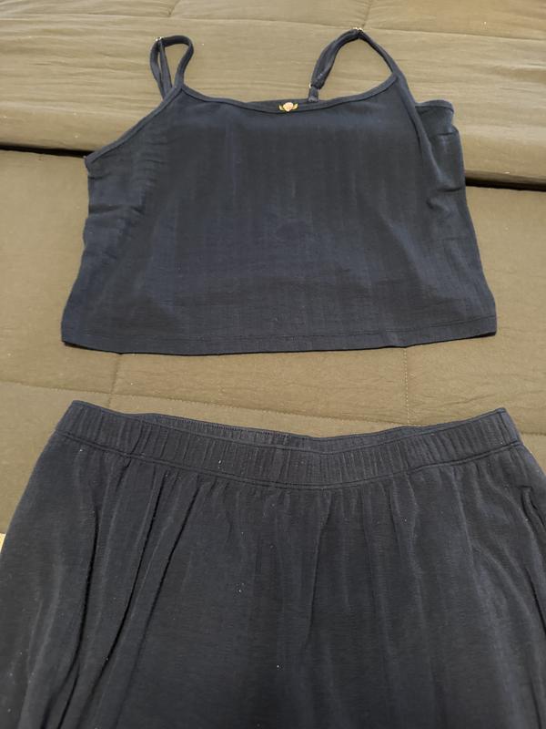 I loved this set in theory. The fabric is soft and the style is so cute. However, the fit was all wrong for me. The top is a complete crop top and I am 5’3. The pants are huge and I could pull them up to my rib cage. They’re also very long. I don’t know how the tank top is covering that much of the model’s torso I am sure she is much taller than me