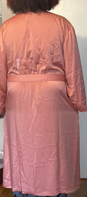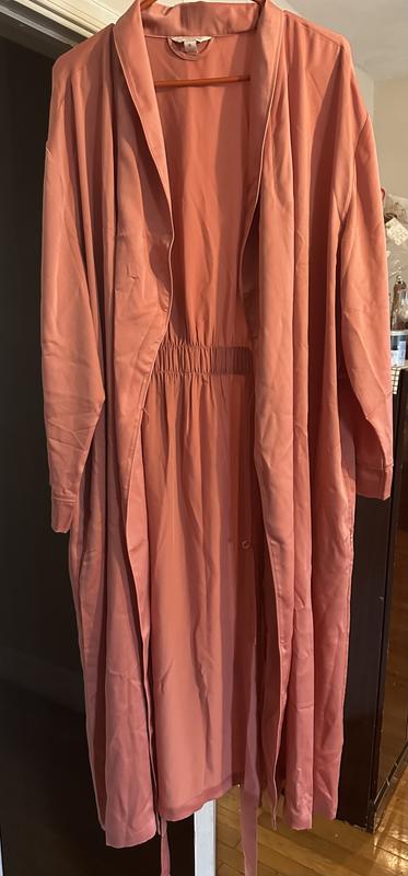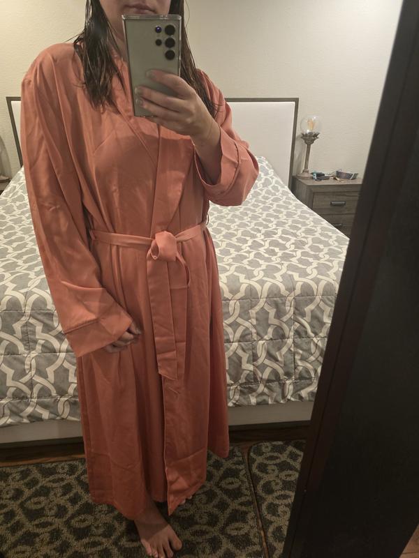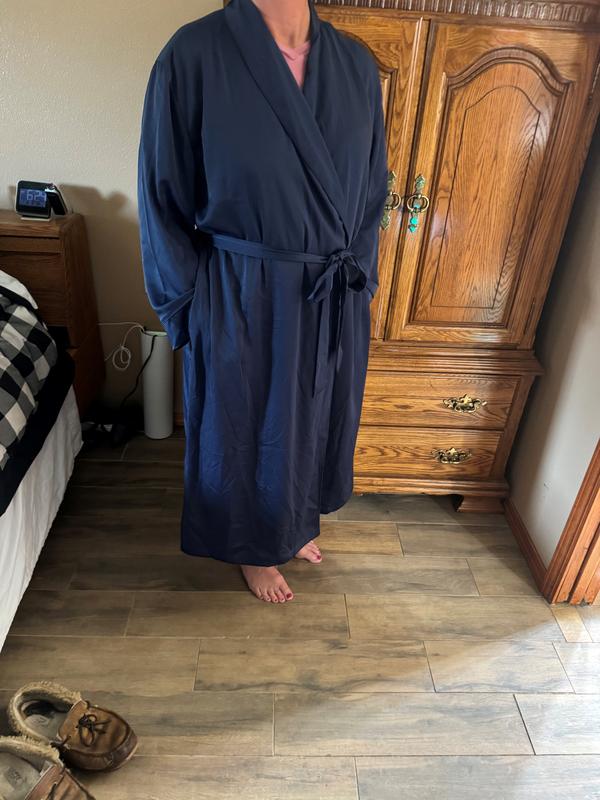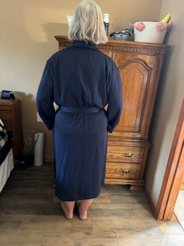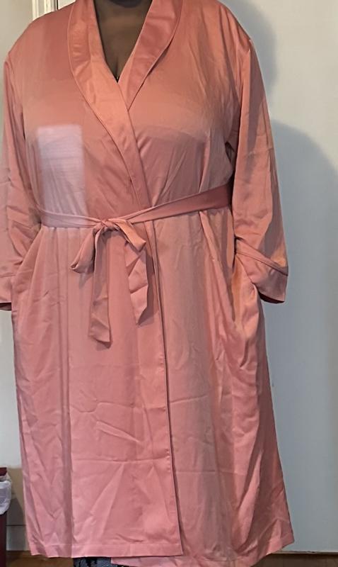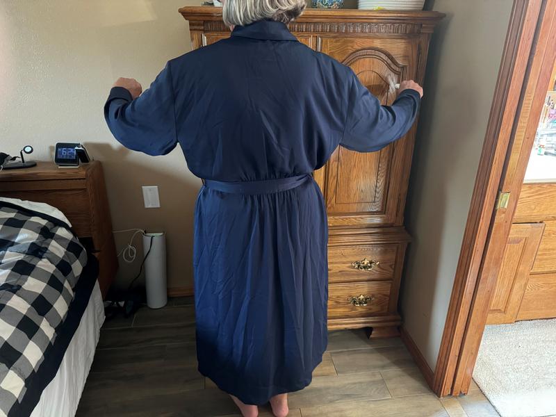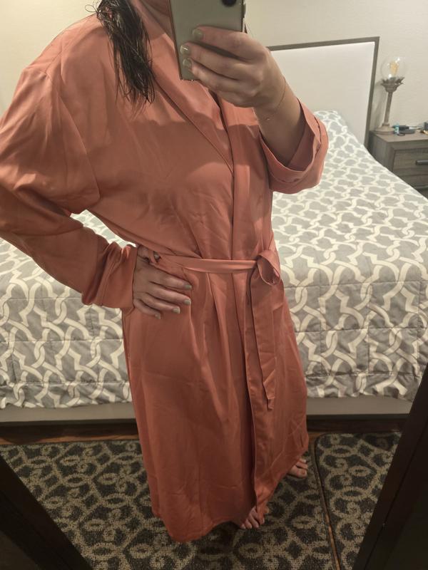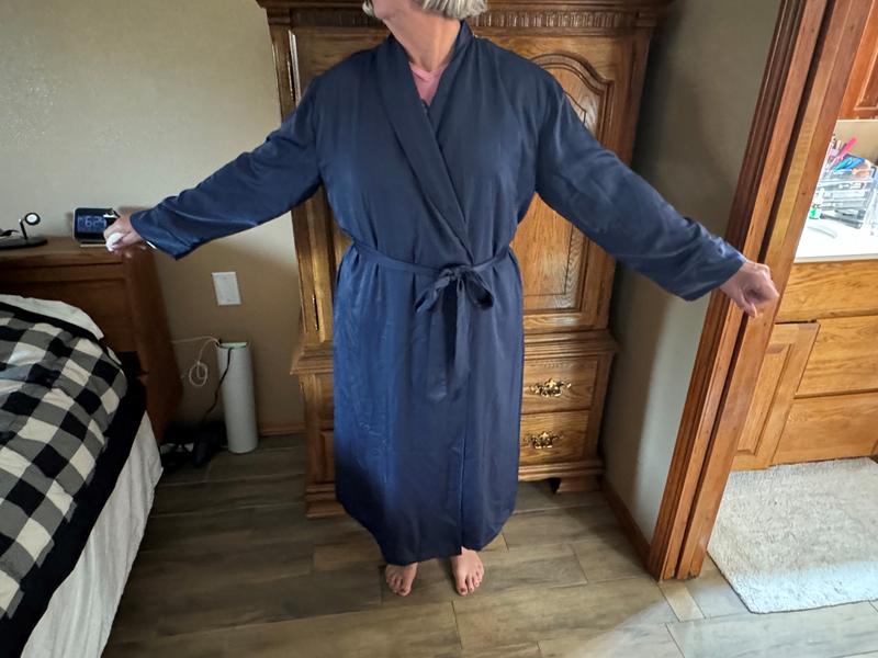 Easy fit and beautiful fabric and color. My best robe now. Leaving the winter robes for now.