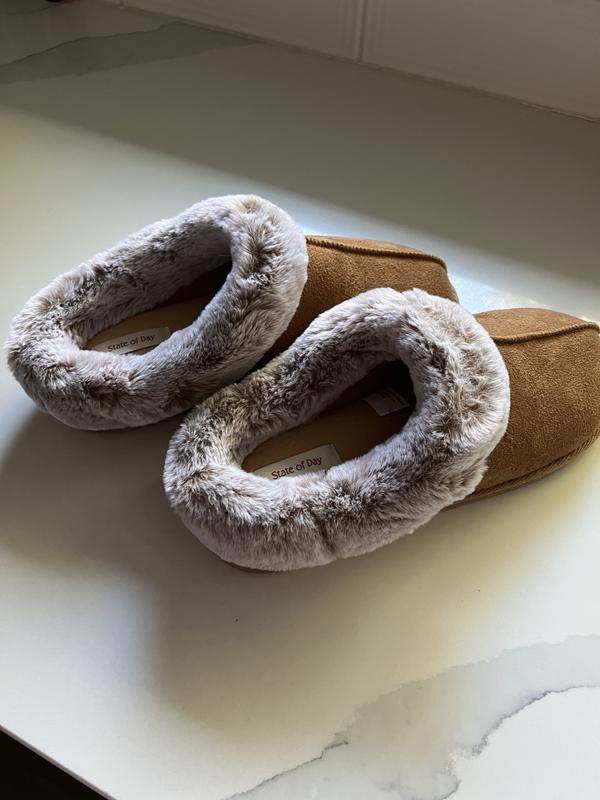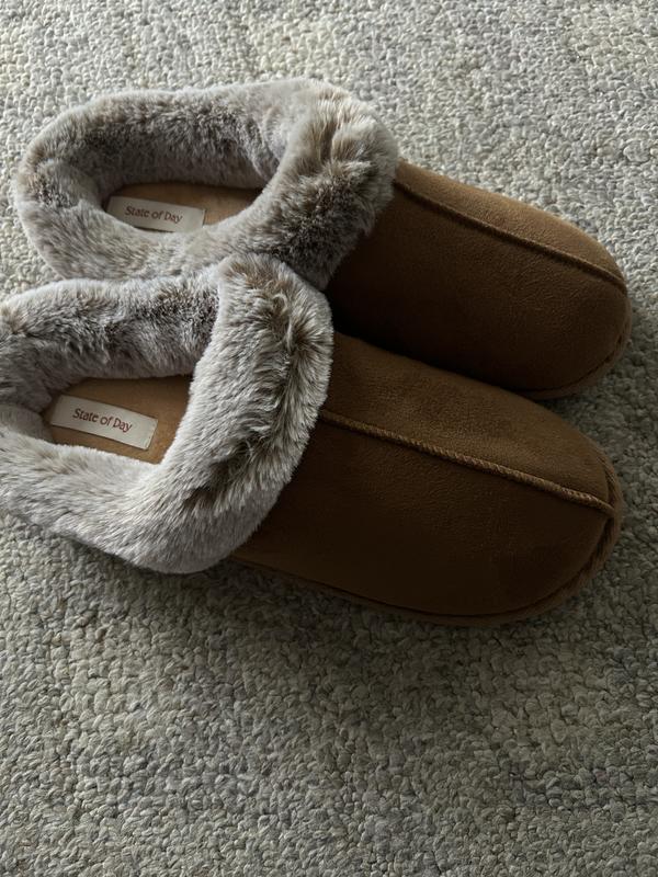 Women's Boxed Faux-Fur-Collar Clog Slippers, Macy's Exclusive