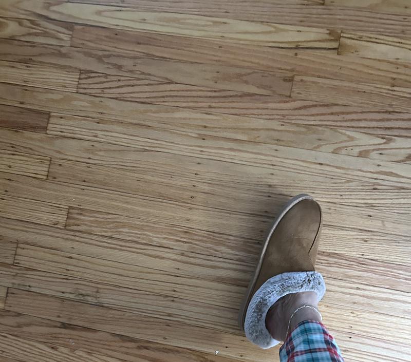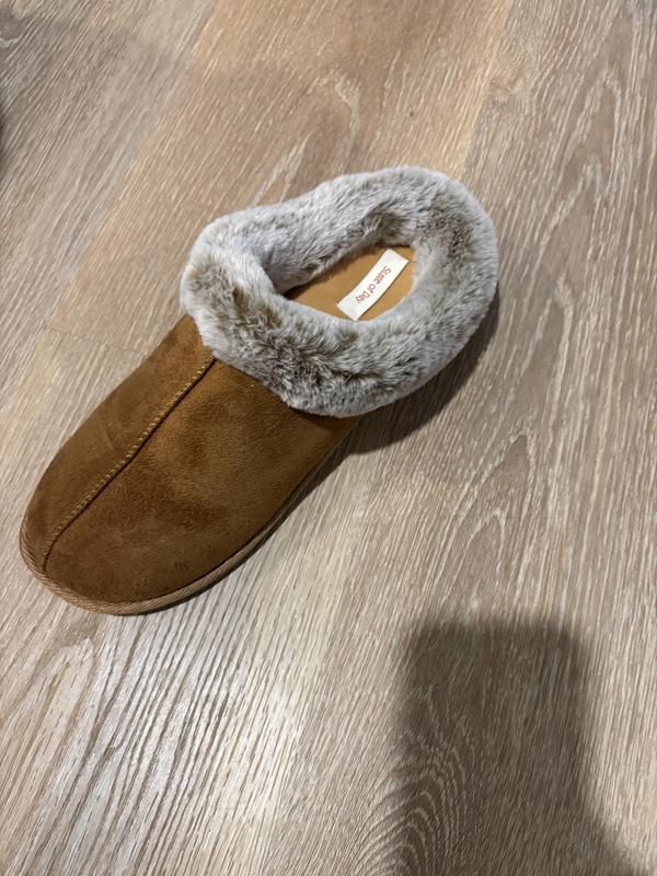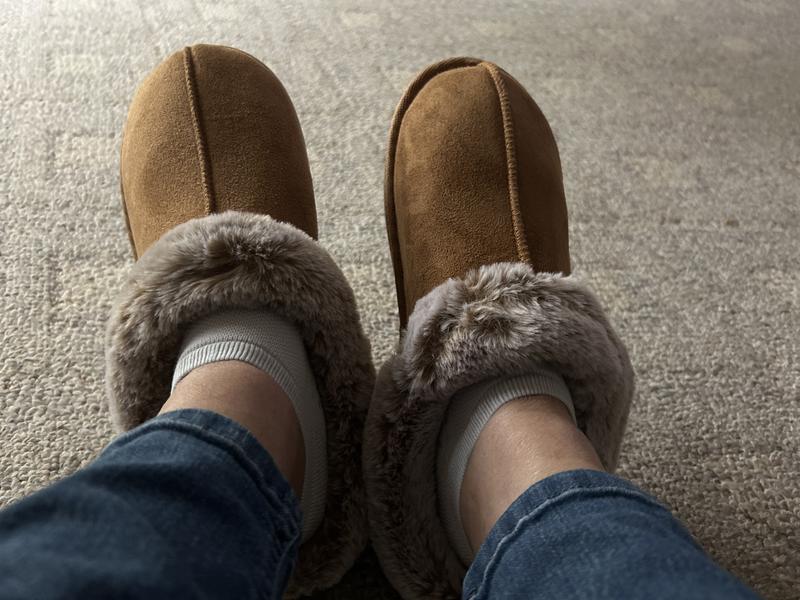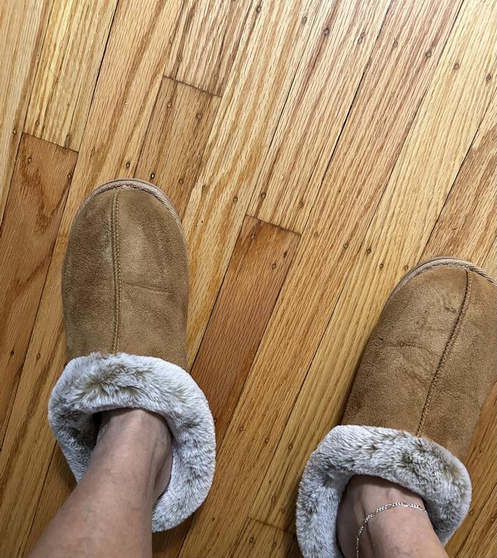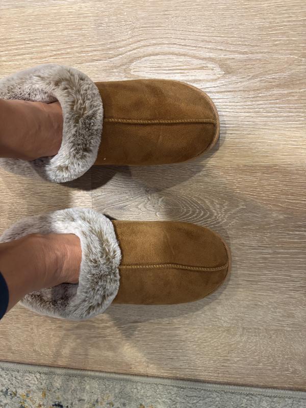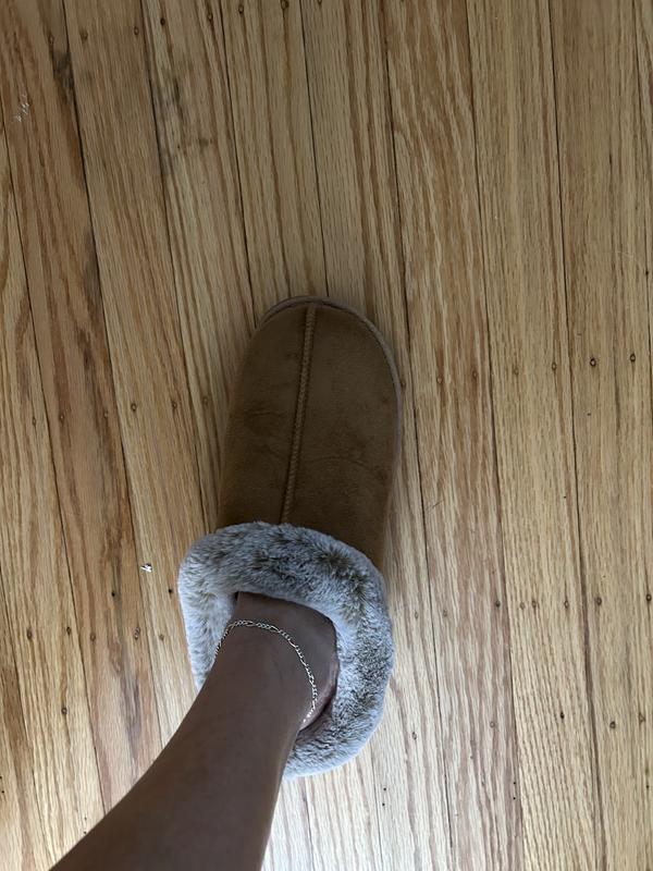 This are great, cozy slippers. True to size. Rubber grip on bottom makes them not slippery. The only thing I don’t love is the tag at the heel bed. Seems like poor location. My kids keep stealing my slippers. I am going to buy them each their own!