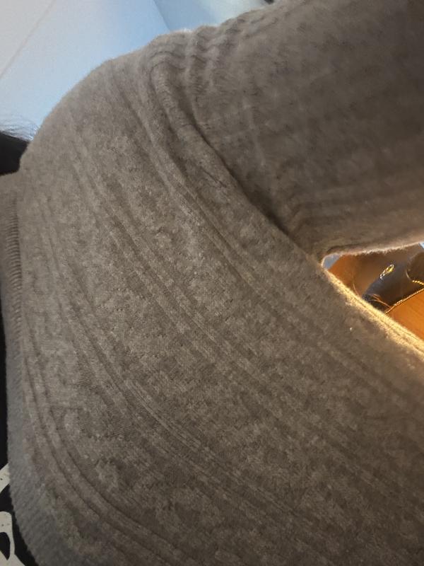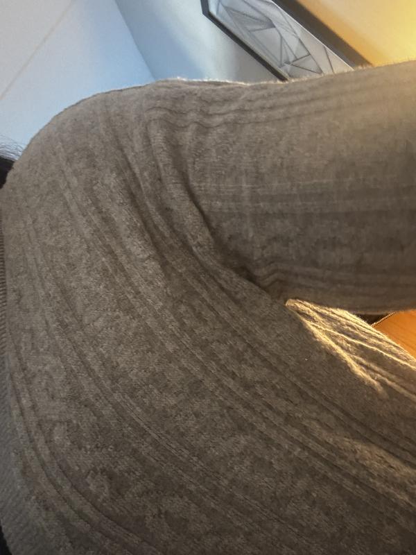 Super cute and comfy sweater. Perfect length to dress up with heels or dress down with sneakers. The fabric is very soft yet keeps its shape. The gray color is neutral and can be worn with any combination. Wore with a t-shirt, jeans and sneakers for a day of shopping and was super comfy. Also has deep pockets and holds a lot.