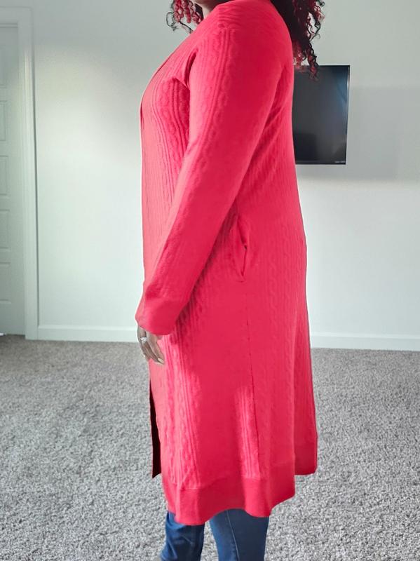 This item is absolutely lovely and will be a welcome addition to a fall and winter wardrobe. It is a nice weight and a beautiful material — and very comfortable! The only issue - in my opinion - it seems to run a little on the small side. I ordered the 2XL and it seems a little snug. Other than that, it is a great item and I highly recommend it!