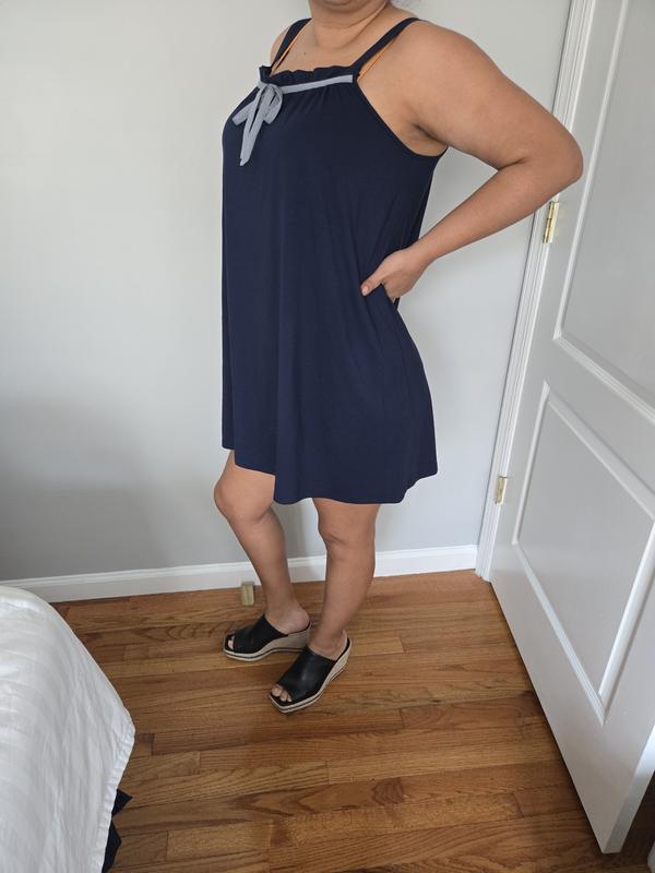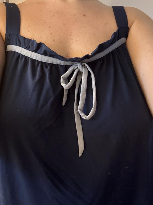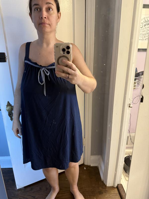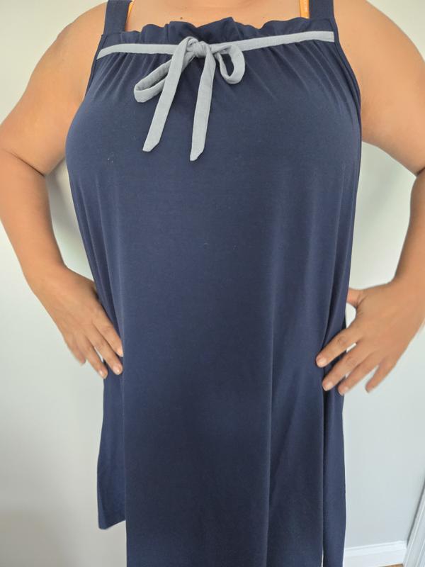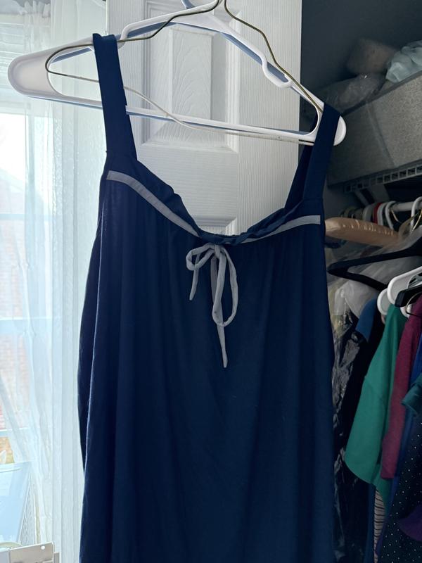 This is a comfortable night gown. The material is breathable- which for me is important. Only things I don’t love- it’s not very flattering, potato sack shape. I don’t feel pretty in it. Adjustable straps would make this product better. The length of the straps as is are a bit too long for me. This is an okay product.