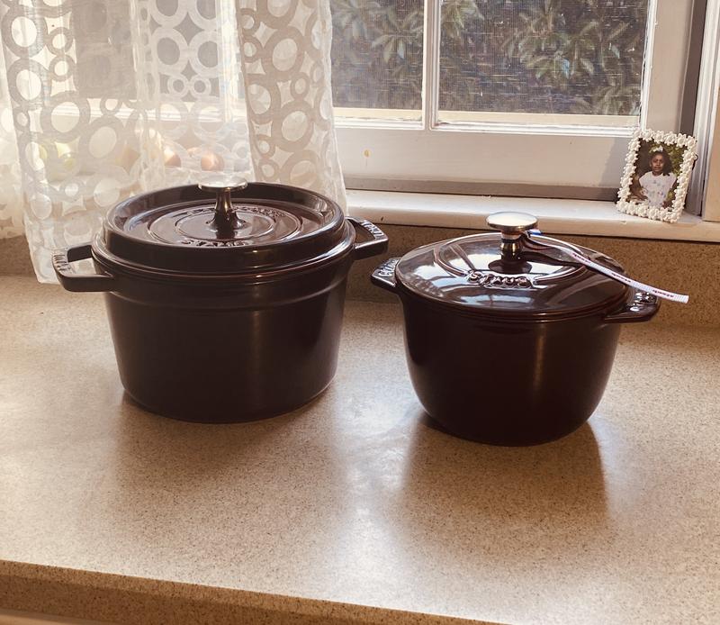 I really like the quality and varied use of the larger Staub cookware. I think this pot will fulfill my need for a smaller sized pot.