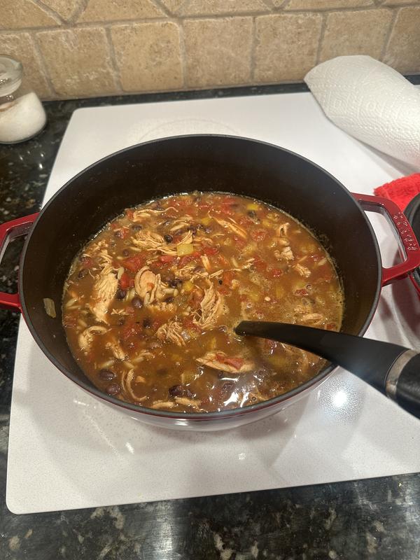 Tonight, was the first time I used it…I’ve been admiring it on my stove since it was delivered. It cold and rainy today. I made a Chicken Tortilla Soup! It worked out perfectly!