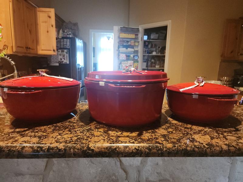 I received the Cocotte 9 qt as a Christmas gift and I’ve been using it every week so far! I love the color grenadine it really adds a pop of color to my kitchen. I definitely would recommend the size as well, it’s perfect for meal prepping.