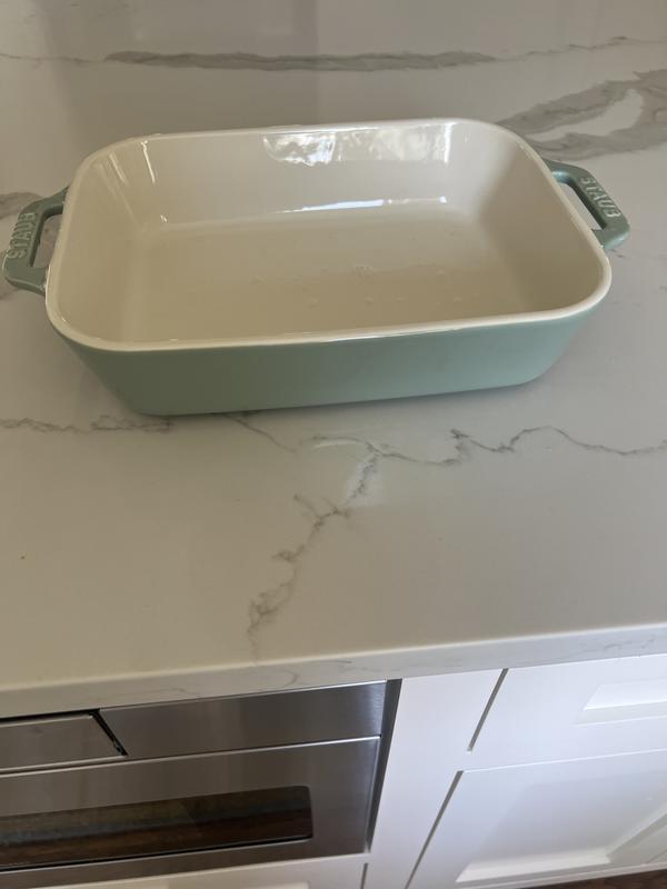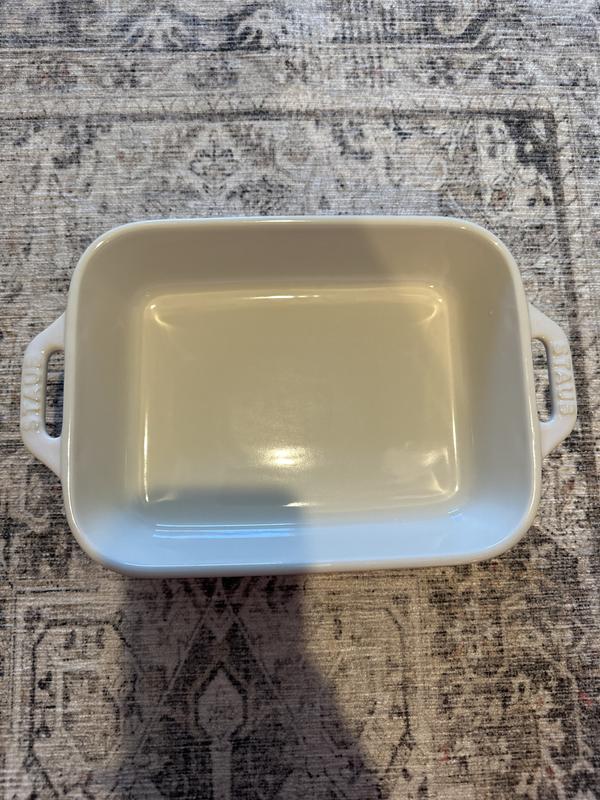 This product is fantastic! I am making the switch from metal and glass pans, to all matching ceramic bakeware by Staub. This one is my favorite so far! The perfect sized dish for our busy weeknight dinners. Clean up is always a breeze and best of all- it looks beautiful on my table! Straight from the oven to the table. No need to transfer the food into a more presentable dish. This is one is lovely!