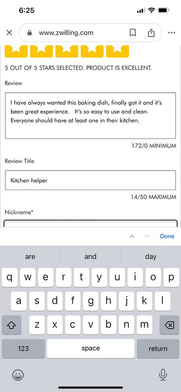 I love this baking dish. I received as a gift. I've been looking for a nice dish for lasagnas, etc. that is high quality and this is it. It is great for cooking as well as for serving.
