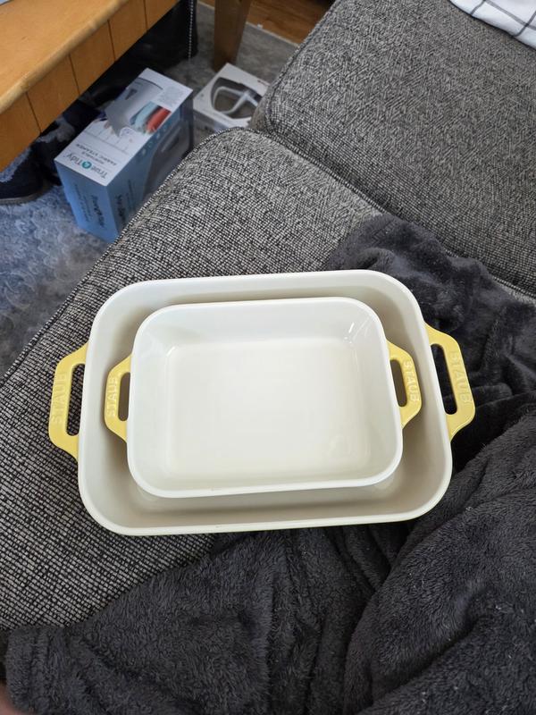 Fantastic baking dishes! Great for baking a main course and a side of veges or baked potatoes. The color I got was blue and it looks so pretty. As always Staub never disappoints. This is my 4th product.