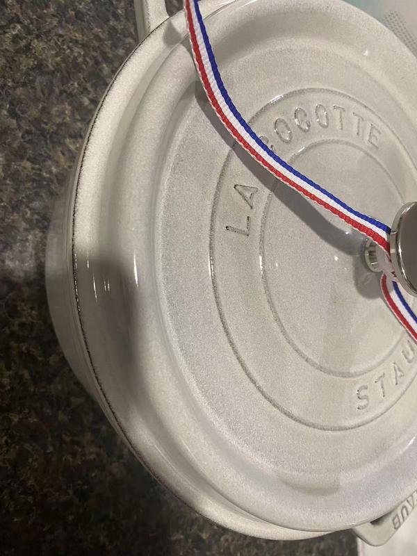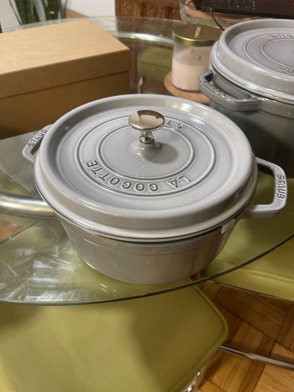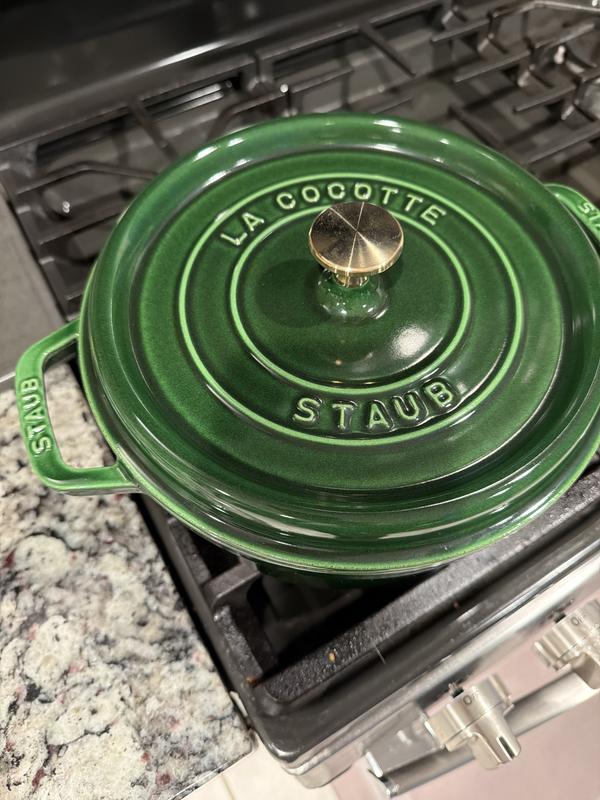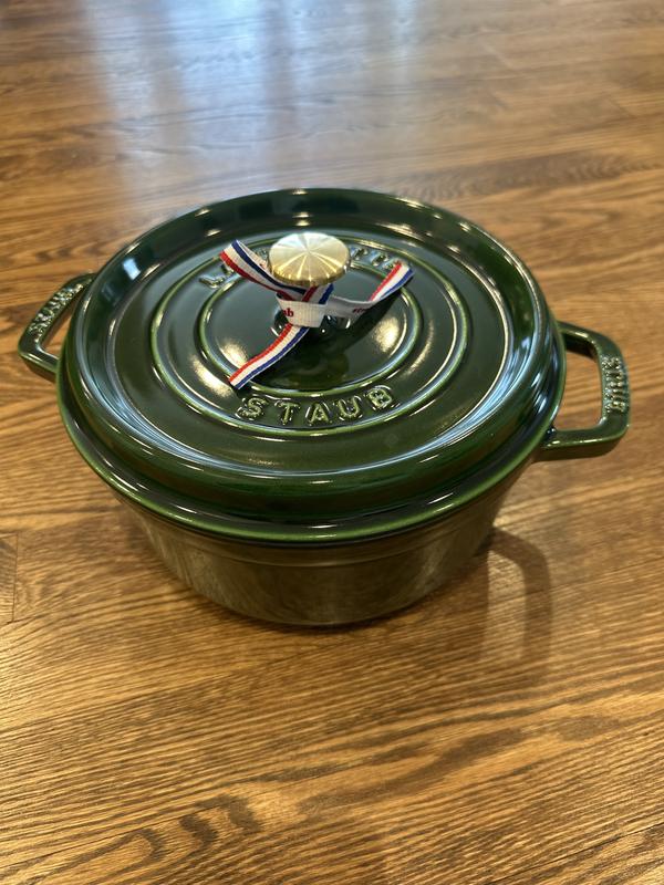 We have several Staub cocotte’s and LOVE them all. IMPORTANT COOKING TIP! When cooking meat, it tends to leave a white film inside the pots, even after washing with soap and water. NO PROBLEM. After washing, simply sprinkle some baking soda and a pinch of water to make a paste. Then rub down the inside of the pot with a damp sponge. Then rinse. The black enamel will look brand new again. 👍
