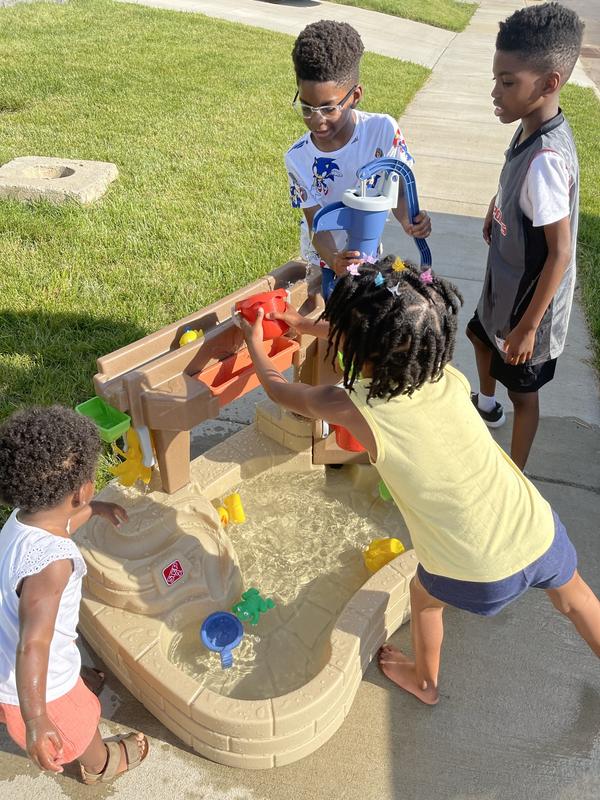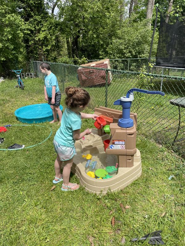 Grandson loves it!! The water play with the pump and fill toys are a real winner. He likes to climb in and get close up to the action, I highly recommend this product.