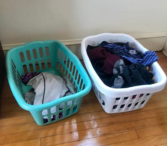 This laundry basket does a great job of holding large loads of laundry and allowing for easy trips to and from the washing machine!