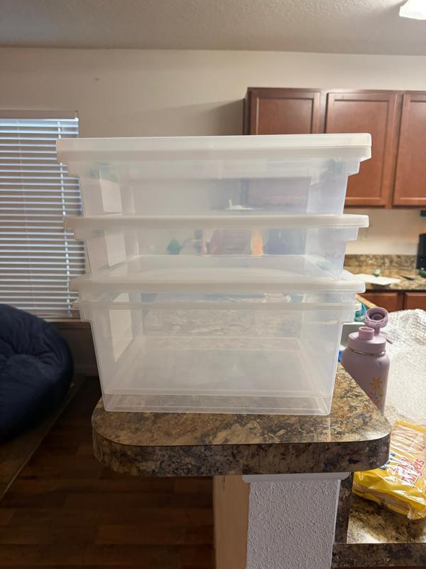 I'm a camper and use the 32 qt. Size. It's perfect keeping everything from paper files to yarn and anything else that needs to store outside in the shed or in the under storage compartment in the camper. Love the gasket seal and they stack better than any other storage containers. Not to mention the size is perfect for a small to carry.