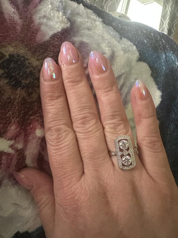 Very elegant. The ring gives an old money , new world, historical with a modern day wearer vibe. I’m obsessed with Art deco, art nouveau and Edwardian style rings. Very gorgeous very antique looking .