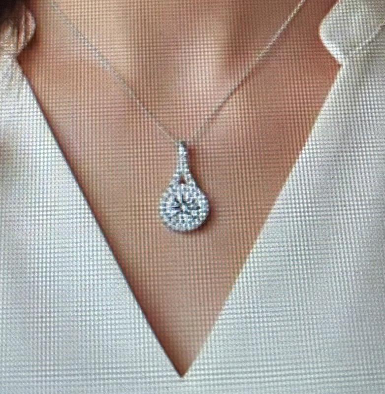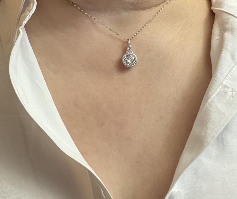 Web ID: 18280347Elevate your jewelry collection with this stunning Sterling Silver Halo Pendant Necklace, a timeless masterpiece designed to capture the light and everyone's attention. At its heart lies a magnificent, brilliant-cut round Cubic Zirconia, encircled by a shimmering halo of pavé-set accents for a high-wattage glow. The sophisticated teardrop silhouette features an elegant split bail, meticulously encrusted with additional stones to ensure radiance from every angle. Whether you are dressing up for any special occasions, or simply treating yourself to a touch of daily luxury, this necklace offers the perfect blend of classic glamour. Available in three exquisite finishes: luminous White Gold Plating, 14K Gold Plating, or 18K Rose Gold Plating, it serves as a versatile staple that transitions seamlessly from office elegance to evening allure. • Brilliant Top Grade CZ Centerpiece and Halo • Premium Sterling Silver and Finishes • Timeless Teardrop Silhouette • Genevive Timeless Sophistication