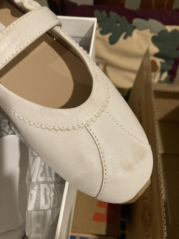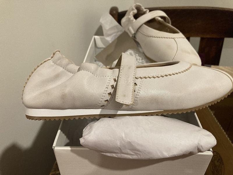 I love the look of the Anaya white distressed flat! It’s more of an off white color, and the distressing, while minimal, really adds a nice touch. They are soft leather, but I did need to wear them a few times to break them in. I normally wear a 6, but sized down to a 51/2 and they fit perfect. Just buy them you won’t be disappointed!🫶