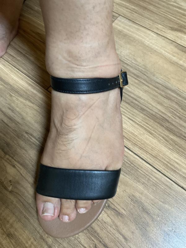I've owned two pairs of these since 2018. They used to be made of soft leather and the tan pair used to be cognac colored (just like the photos). But the new version of this sandal is now dark brown and the material feels hard and plastic. The quality of the shoe has changed, and not for the better.