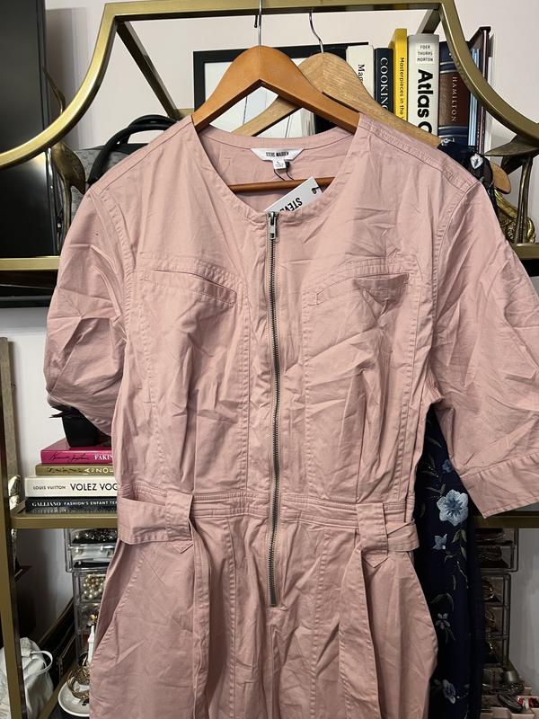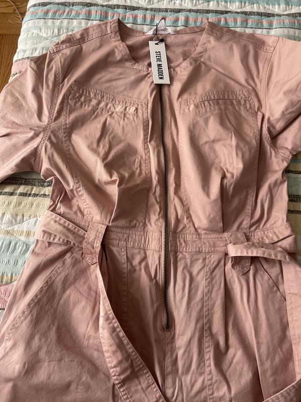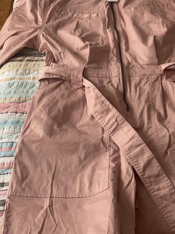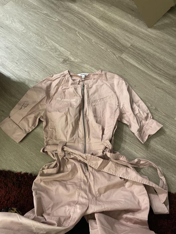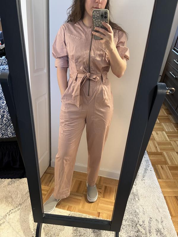 Loved this jumpsuit. It runs a little large but with the waist belt it can be tightened to be figure flattering. It paired great with some cargo boots. Perfect for fall and spring. You can leave the zipper open a little and pair it with a cami and it’s perfect. I would say size down for a more of a flattering fit.