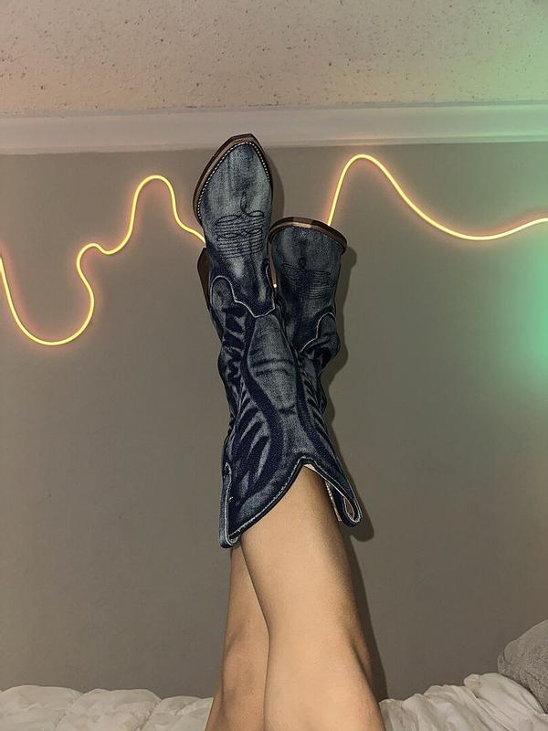 These denim boots look very classy. Feels good on my feet and make me feel like a Cowgyrl!!