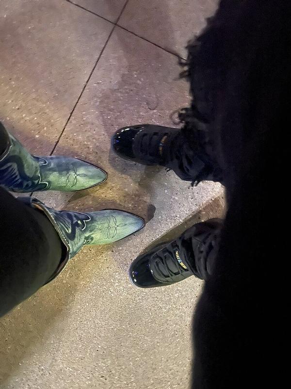 These boots are a closet must have. I got so many compliments on them all night. Size up a half Or whole size for comfort.
