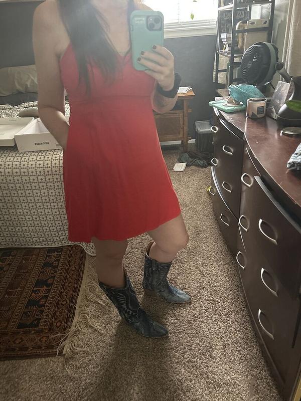 I love, love, these boots! They are true size and can be worn year round. I would recommend wearing them with denim shorts or a denim dress. I received sooooo many compliments!