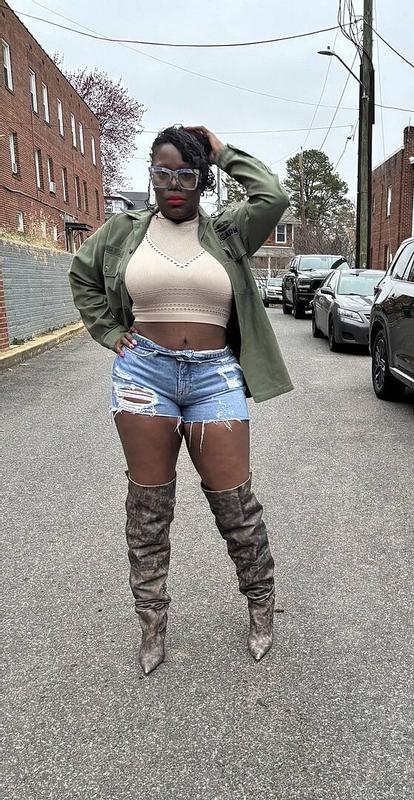 I absolutely love these boots. The heel height is perfect that you can walk all day with them and not look like you got on lemon pepper steppers. Now the thigh height was unexpected for my 5’3 self but I love that they sit way up my thighs with ease. I probably wouldn’t have purchased them if I would’ve known it, but I’m so glad I did because it’s a different look and I can’t wait to rock it.