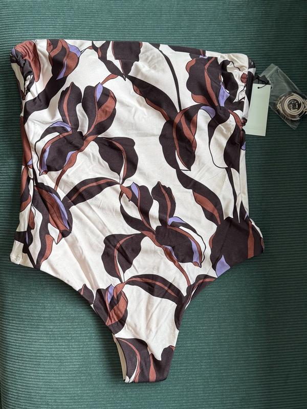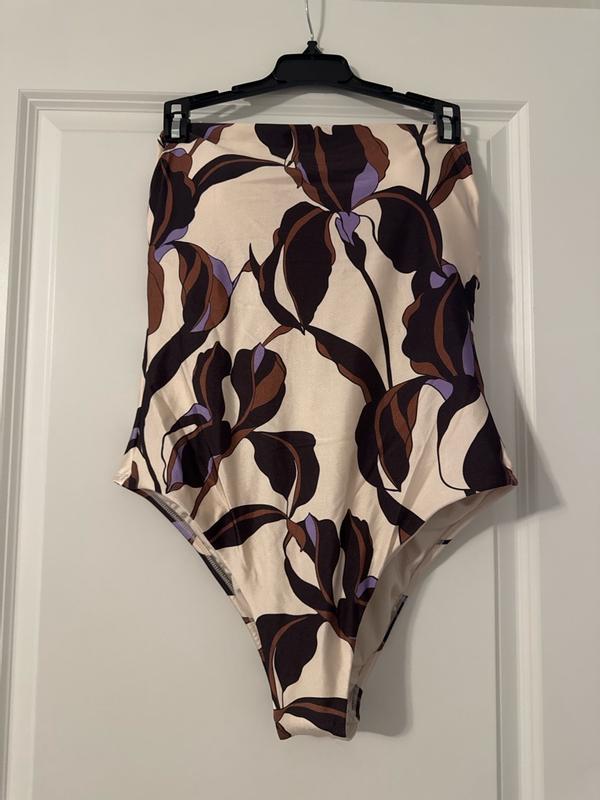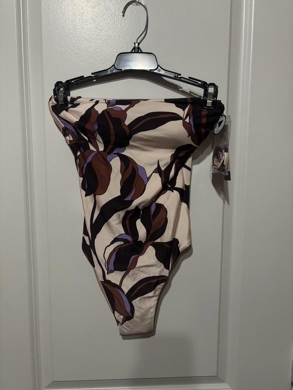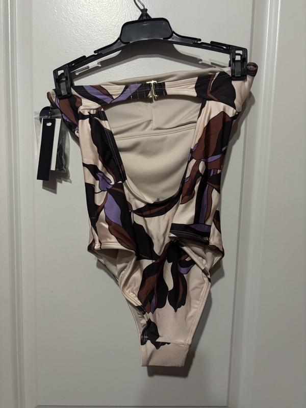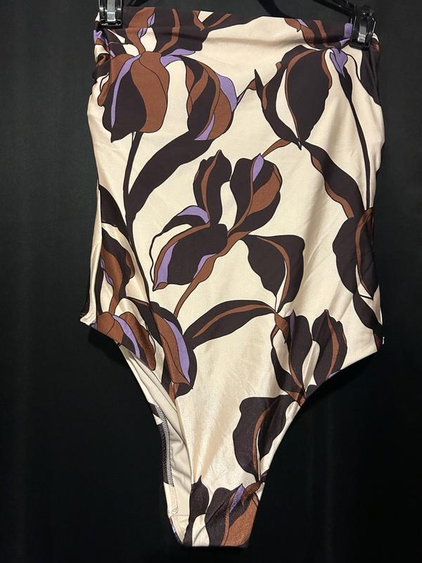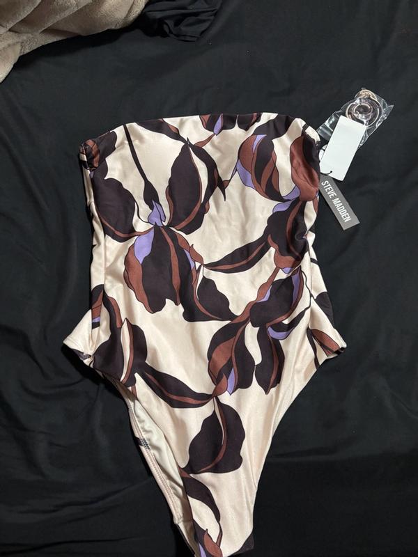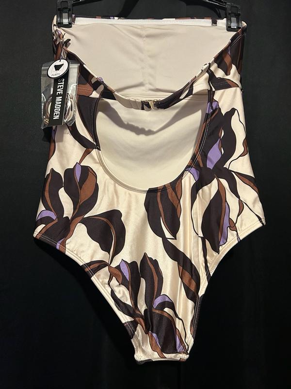 Amazing one-piece bandeau swimsuit from Steve Madden! It’s super flattering (Tommy looks awesome) with great bottom coverage, solid cups, and removable straps. I got it in XL, and im 5’11” it fits very well. The material is soft, thick, and not see-through when wet. The pattern hides what it should and it’s very feminine. Definitely my new pool favorite!