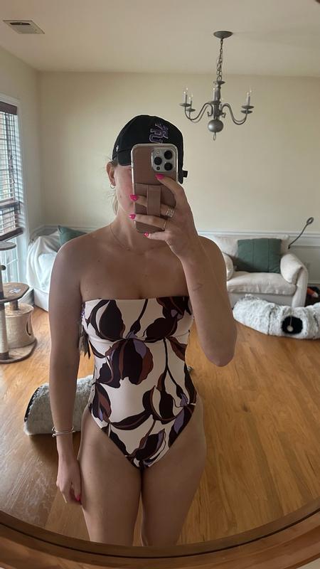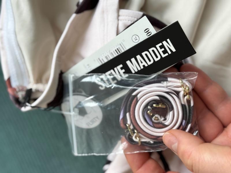 The Steve Madden bandeau swimsuit is super cute and minimal, with a clean strapless neckline that instantly looks chic and flattering, especially if you like showing off your shoulders. The material feels smooth and hugs the body nicely without looking bulky, making it great for lounging or taking cute vacation photos. The only downside is the support — because it’s a true bandeau, it can shift a bit and doesn’t offer much lift, so it’s definitely better for relaxing by the pool than doing anything active in the water. Overall, it’s stylish, comfortable, and perfect if you want a simple, pretty swimsuit and don’t need a lot of structure.