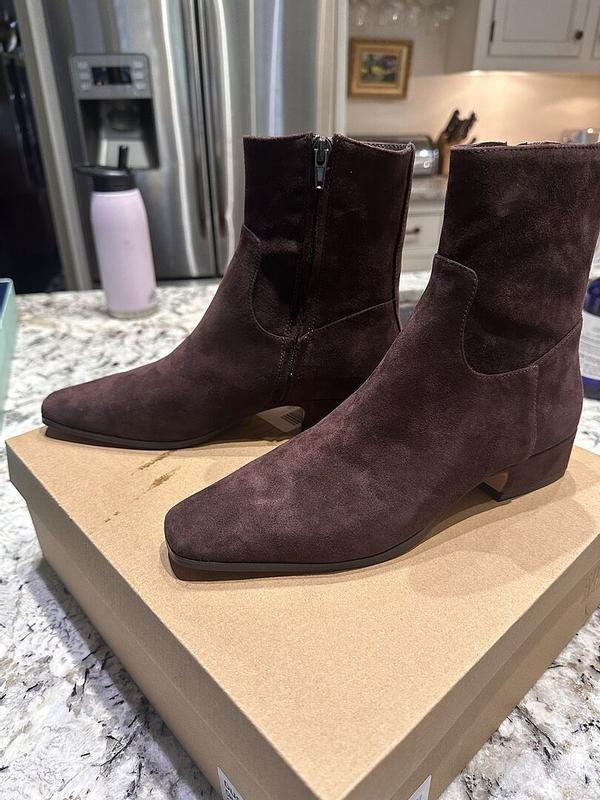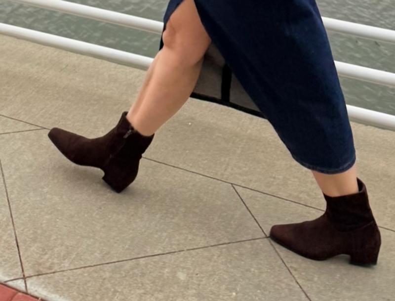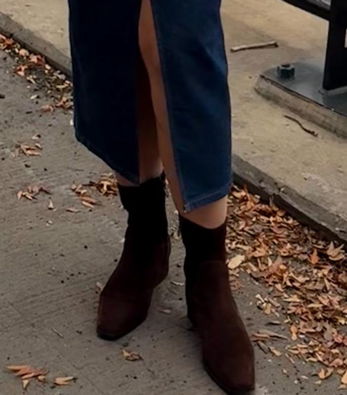 The lower heel is very comfortable when I’m walking a lot and don’t want to wear sneakers. Some reviews said these are narrow and I can very slightly feel that but not enough to be uncomfortable at all. I wear a 9 in boots (8.5 in flats) and that’s what I purchased and they’re perfect.