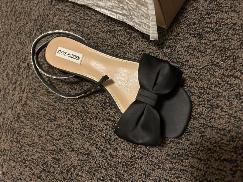 These are the perfect low dress sandal. The rhinestone ankle strap is beautiful and makes the whole look. I rated it 4 because the bow is larger than I’d like, but it’s the rhinestone ankle strap that makes these sandals.