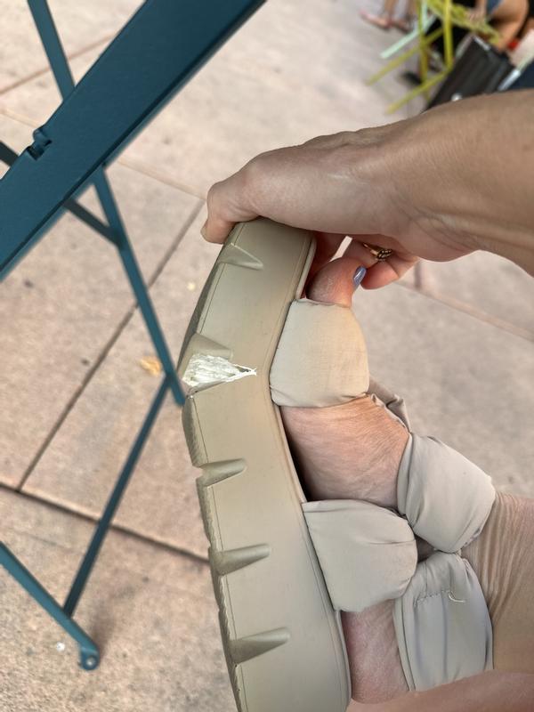 The sandals are so comfy and you will get so many compliments. The sole is cheaply made and will split after a couple of wears. 😫