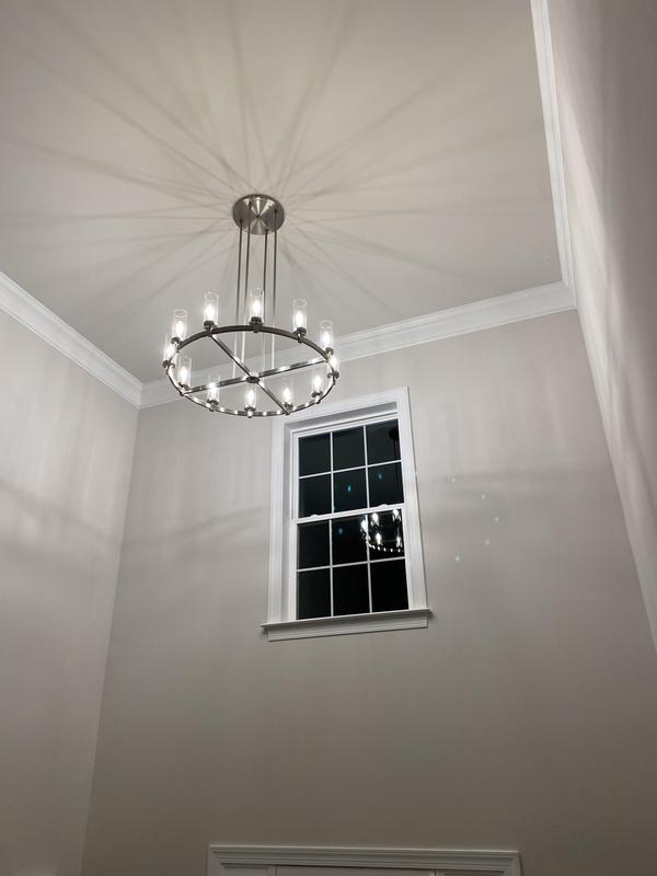 Beautiful chandelier! Looks amazing in our foyer. Replaced the chandelier from the builder in our new home. It commands attention without being bulky and over the top. Highly recommend.