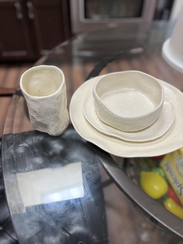 We love our new dinnerware. I been looking for these for a long time and have finally found the right ones. The finish is wonderful. It is soft and the cups feel great in your hand. I don't know how durable they will be but I have already accedentally knocked the edges when putting them in the dishwasher but no damage has been done. We have had great positive responses from guests.