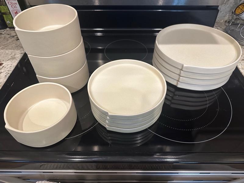 Gorgeous unique color dinnerware. Good quality and have gotten many compliments! Highly recommend these. The style of these is perfect. Can go in the dishwasher as well!