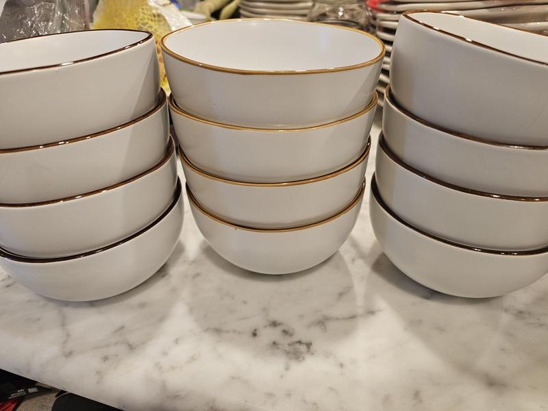 These are very nice, but the color on the rims is inconsistent. I got 12 place settings