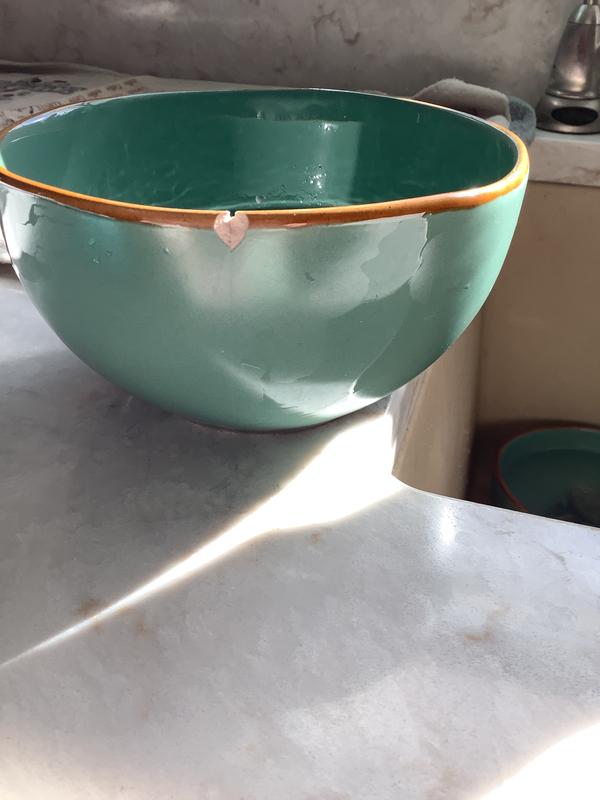 The set is beautiful, but the quality control was not very good on this set. There were 5 or 6 of the 32 pieces that had either blue glaze on the copper edging, bubbles where the white stone/ceramic showed through the blue, or scratches.