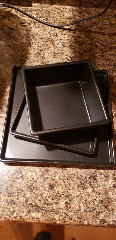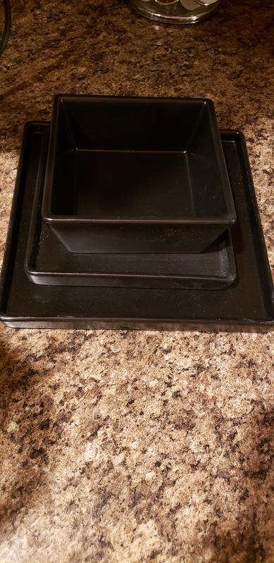 This is a great set of stoneware! I love the shape, square bowls are so unique. I feel like the shape allows for safer stacking and gives more room in my cabinets. This is a really sharp set of dishes.