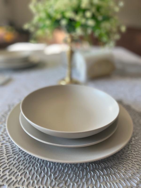 I love this set in the dark gray color! The dishes have the perfect weight, and I love how it has lips to prevent food from sliding off. This is durable stone wear that sounds like and feels like home. This set also has gorgeous matching server ware that can be purchased as well. This is a five star in my book!
