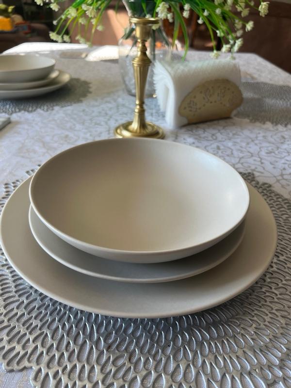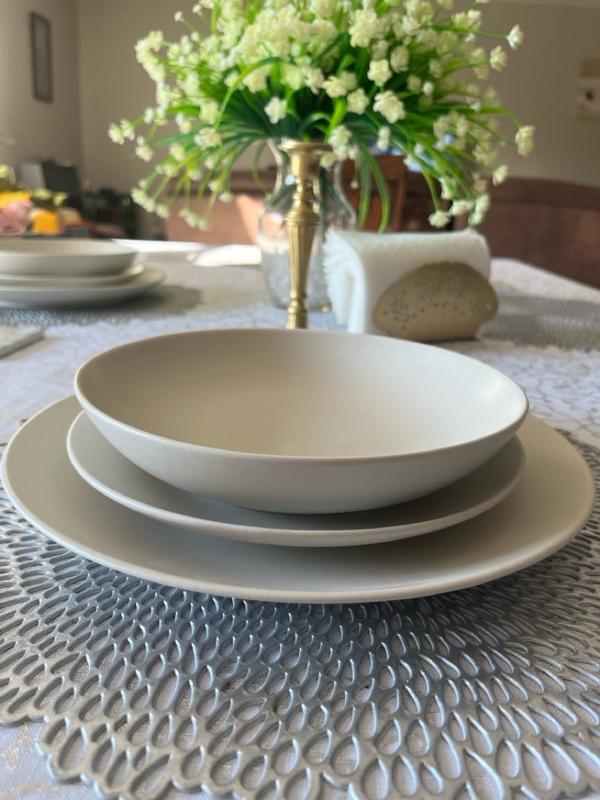 I received the Porto by Stone Lain Semplice 12-piece Dinnerware Set in White Matte and I’m a little disappointed as the color is more of a beige color. I was expecting it to be at least an off white color if it wasn’t going to be a true white (for color comparison please refer to the last photo provided). However, I do love the matte finish and it is a nice beige color if that is what you are looking for but it’s definitely not a white color. For that reason, I give it 4 stars.