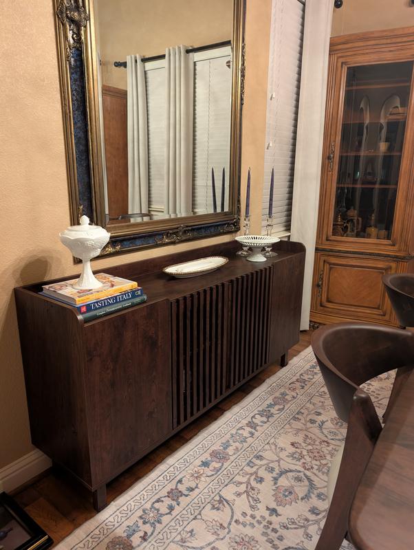 Storage Cabinet, 63" Large Buffet Cabinet with Shelves and Grille Doors