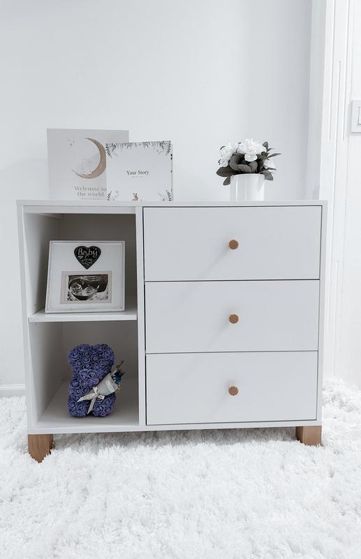 The cutest dresser ever! I store the diapers, wipes and memorabilia. It was a breeze to assemble and the quality, too tier!